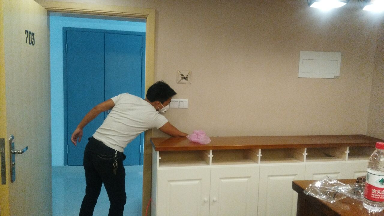 治理方案及施工:公司針對其房屋結(jié)構(gòu)特點(diǎn)及污染情況,我公司技術(shù)及施工人員采用專項治理的施工方案,針對其墻體立面(墻紙)、沙發(fā)、櫥柜等污染源表面使用我公司自主研發(fā)的利純納米光觸媒進(jìn)行甲醛清除,采用高壓霧化噴涂的方法,最大限度消除室內(nèi)的甲醛污染,對于重新刷漆的家具、門、書架、衣柜等采用甲醛清除劑進(jìn)行處理,對于床底部位則使用生物酶異味清除劑,針對不同污染物,做全面治理,治理后的室內(nèi)環(huán)境達(dá)到國家規(guī)定的室內(nèi)空氣質(zhì)量指標(biāo)范圍內(nèi),業(yè)主對我公司的治理給予充分肯定。下面為施工現(xiàn)場照片: